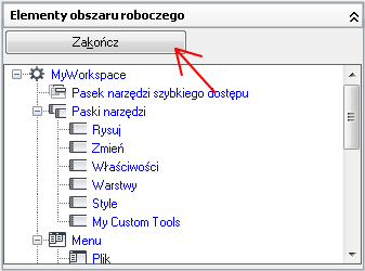 W panelu Zawartość obszaru roboczego kliknij Zakończ.