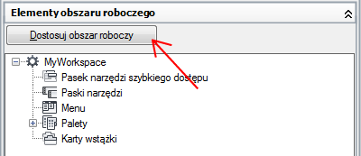 Na karcie Dostosuj, na panelu Dostosowywane pliki: <nazwa pliku> kliknij znak plusa (+) obok węzła Obszary robocze, aby go rozwinąć.