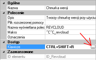 - W panelu Właściwości kliknij pole Klawisze, a następnie kliknij przycisk […], aby otworzyć okno dialogowe Klawisze skrótów.