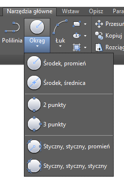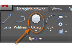 Domyślna opcja polecenia OKRĄG wymaga określania punktu środkowego i promienia.