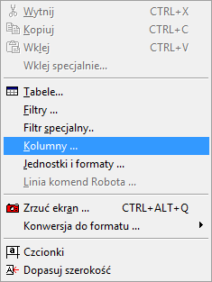 Zostanie otwarta tabela powierzchni zbrojenia.