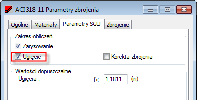 Otworzy się okno dialogowe Parametry zbrojenia ACI 318—11.