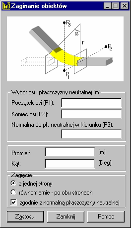 Opcja służy do zaginania obiektów (ang. bending) wokół zdefiniowanej osi. Opcja dostępna jest: