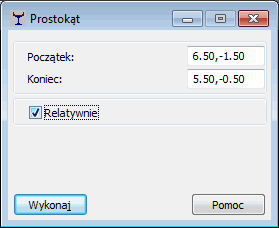 Opcja ta służy do definiowania prostokątów w sposób graficzny lub poprzez wprowadzenie współrzędnych w odpowiednich polach edycyjnych w oknie dialogowym Prostokąt.