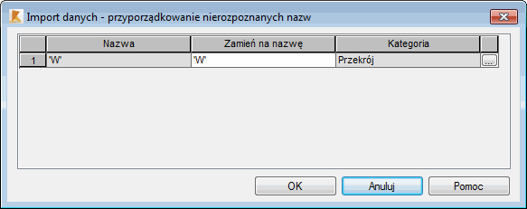 Opcja służy do zmiany nazw materiałów lub przekrojów, które nie zostały rozpoznane w pliku o formacie DSTV lub CIS/2 (*.stp). podczas importu do programu Robot. Po wybraniu w oknie dialogowym Otwórz pliku DSTV lub CIS/2 (o rozszerzeniu STP) i naciśnięciu przycisku Otwórz na ekranie pojawia się pokazane na poniższym rysunku ono dialogowe.