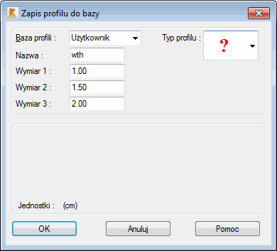 Jednostki podawane w dolnej części okna dialogowego dotyczą typu przekroju (podawane są w bieżących jednostkach wymiarów przekroju).