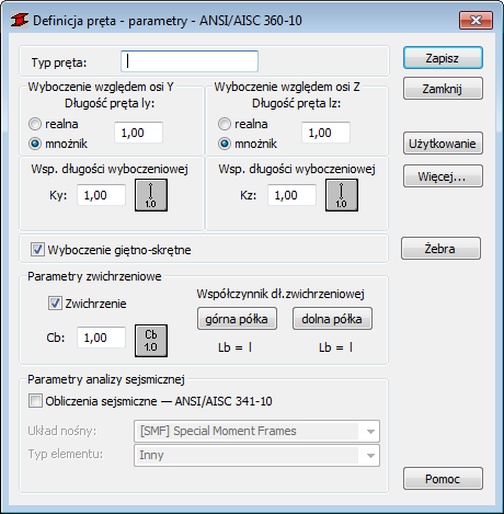 Uwaga: Programy wykorzystują zestawy przepisów dla obciążeń sejsmicznych oparte na normie ANS/AISC 341—10 — „Seismic Provisions for Structural Steel buildings”.