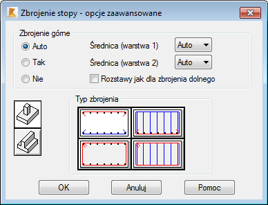W przypadku wybrania opcji Auto program automatycznie określa, czy zbrojenie górne jest konieczne.