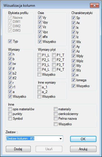1. Wybierz opcję <Nowy zestaw kolumn> w polu Zestaw. Wszystkie opcje okna dialogowego są teraz dostępne do edycji