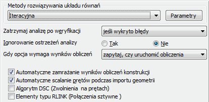 - Podczas obliczeń konstrukcji, w której zdefiniowane są połączenia sztywne, włączane są elementy typu RLINK.