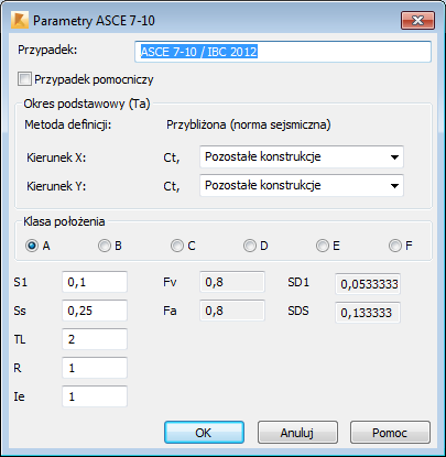 (A, B, C, D, E lub F) na podstawie właściwości gleby sklasyfikowanych zgodnie z rozdziałem 20 normy ASCE 7.