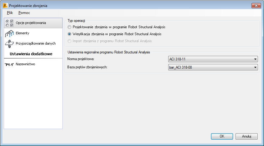 Wyświetlone wartości dla programu Robot są zgodne z normą projektową znajdującą się w zakładce Opcje wymiarowania.