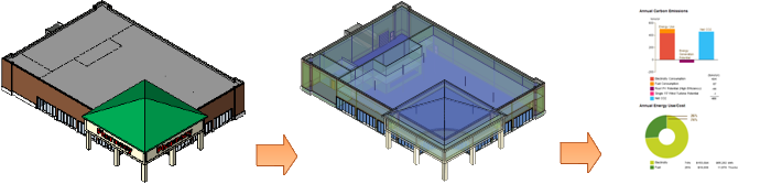 Na późniejszych etapach procesu projektowania można użyć modelu programu Revit, składającego się elementów budynku, do wykonania analizy energetycznej.