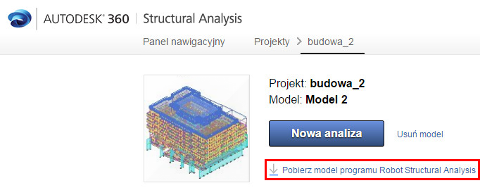 (Pobierz model programu Robot Structural Analysis) w kolumnie Analiza.