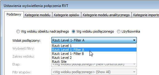 - W oknie dialogowym Ustawienia wyświetlenia połączenia RVT, na karcie Podstawy wykonaj następujące czynności: