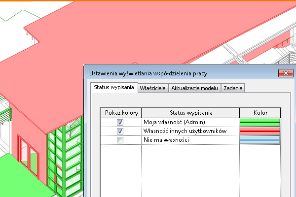 Określony kolor dla odpowiedniego stanu wypisania właściciela zostanie wyświetlony w modelu.