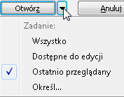 Aby otworzyć zadania w oknie dialogowym Otwórz
