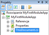 Należy również zauważyć, że w Eksploratorze projektów Revit macro IDE wyświetlany jest kontekst.