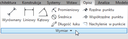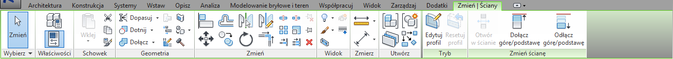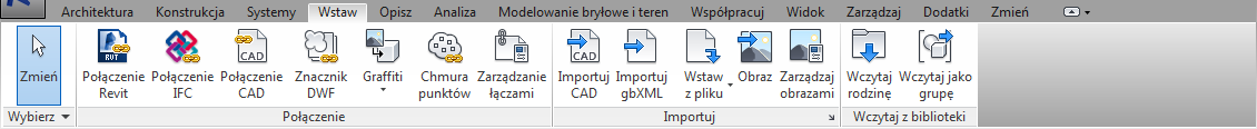 Wstążka jest wyświetlana podczas tworzenia lub otwierania pliku. Zawiera ona wszystkie narzędzia potrzebne do utworzenia projektu lub rodziny.