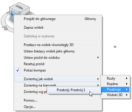 Używając narzędzia ViewCube, można zorientować widok 3D w dowolnym rzucie, widoku elewacji, przekroju lub widoku 3D w projekcie.