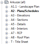 Arkusze dodawane do projektu są wyświetlane w Przeglądarce projektu w obszarze Arkusze (wszystkie).