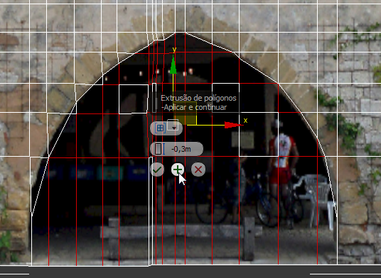 Você irá efetuar a extrusão do arco em duas etapas: a primeira etapa proporciona profundidade à parede e a segunda representa parte do interior da arcada atrás do arco.