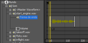 Quando o avião começar a taxiar na pista, pode ser uma boa ideia prolongar o segmento de áudio start_engine para simular uma decolagem difícil.