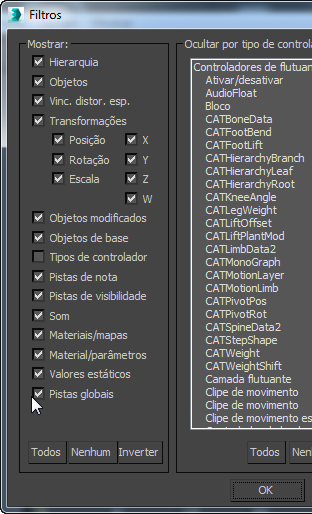 Dica: Se a Trilha sonora não estiver visível depois que você alternar para o modo Dope Sheet, clique em Chaves: barra de ferramentas do Dope Sheet (Filtros). A seguir, na caixa de diálogo Filtros Mostrar grupo, clique para ativar Pistas globais.