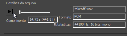 O grupo Detalhes do arquivo também contém as opções que permitem controlar como o arquivo é reproduzido na cena. Você pode, por exemplo, aplicar um ciclo ao arquivo para que ele seja repetido por um número de vezes especificado ou inserir o primeiro e último quadro no qual o som é executado. A opção Ativo permite que você inclua ou exclua o arquivo de som da reprodução.