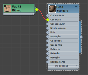 - Ligue o novo nó Bitmap ao componente Cor difusa do material Cabeça.