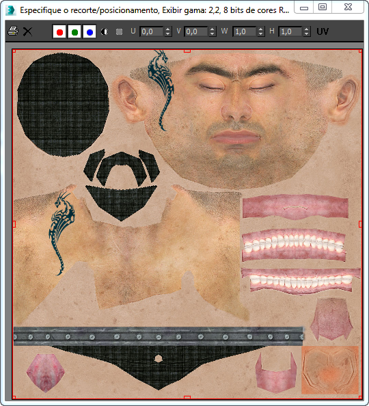 Esse arquivo de imagem é um bitmap difuso da face do guerreiro criado anteriormente, com base no modelo aberto.