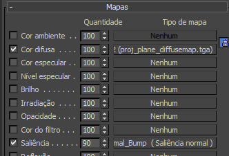 - No painel Editor de parâmetro, abra a implementação Mapas e aumente o valor de Saliência para 90.