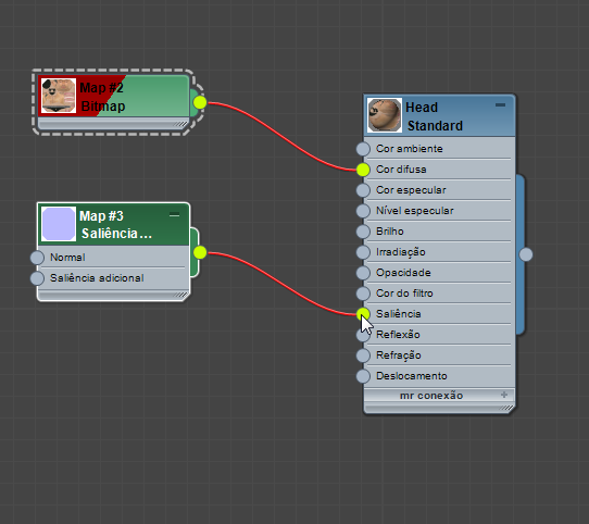 - Ligue o nó do mapa Saliência normal ao componente Saliência do nó do material Cabeça.
