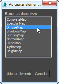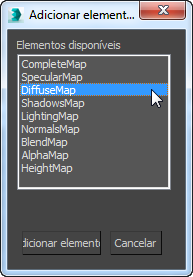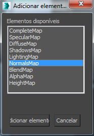 - Na implementação Saída, clique em Adicionar novamente na caixa de diálogo Adicionar elementos de textura, clique para realçar NormalsMap e então clique em Adicionar elementos.