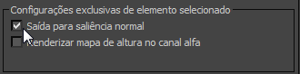 - No grupo Configurações exclusivas do elemento selecionado, ative Saída em saliência normal, de forma que o resultado seja mostrado adequadamente no viewport e no quadro renderizado.