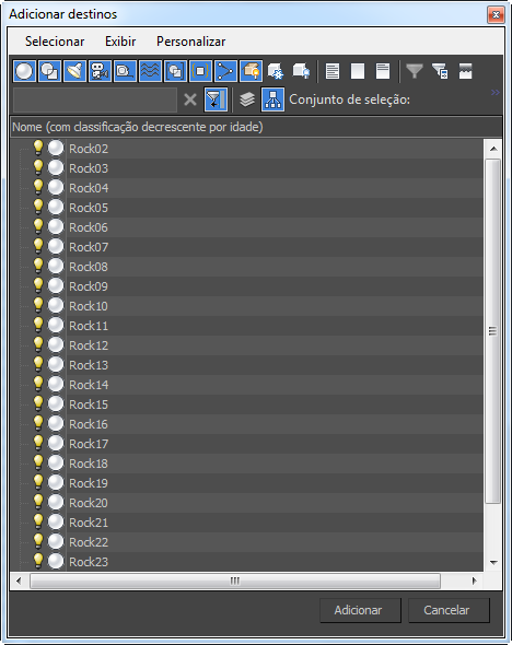 - Clique no primeiro item da lista e clique com a tecla Shift pressionada no último item da lista para selecionar todas as pedras e a argamassa. Clique em Adicionar.