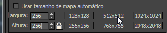 - Clique no botão Largura/Altura 512 x 512 para definir a resolução de saída do mapa de saliência de normais.