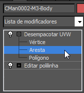 painel Modificar e na pilha do modificador, escolha o nível de subobjeto Aresta.