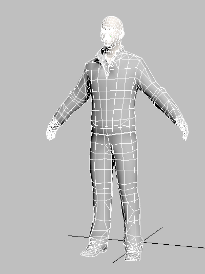 Selecione o modelo CMan (o nome completo é CMan0002-M3-Body ). O modelo já tem um modificador Unwrap UVW aplicado, mas ele ainda não está totalmente configurado. Ele inclui alguns conjuntos de seleção de subobjetos de Polígono para facilitar seu trabalho.