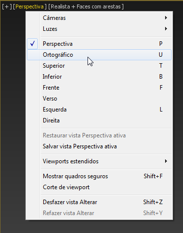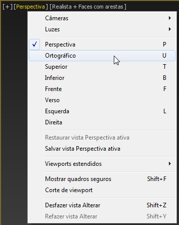 Durante esta lição, você precisará aplicar zoom, órbita e girar a vista para seguir as etapas. Uma vista em perspectiva corta a vista do modelo, o que dificulta o trabalho. Um vista ortogonal é mais fácil de navegar para essas finalidades.