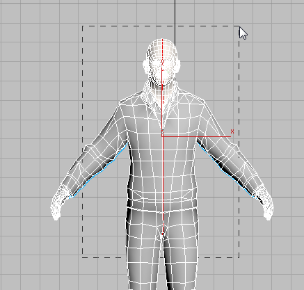 (Ciclo: arestas XY). O3ds Max seleciona um ciclo de arestas que circunda o tronco e inclui a cabeça.