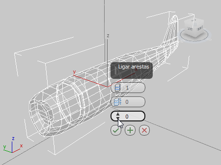 (Conectar). O 3ds Max exibe a caixa de ferramentas Conectar. Na caixa de ferramentas, certifique-se de definir Slide (o terceiro controle) em 0 para que o novo conjunto de arestas fique perfeitamente centralizado e, em seguida, clique em