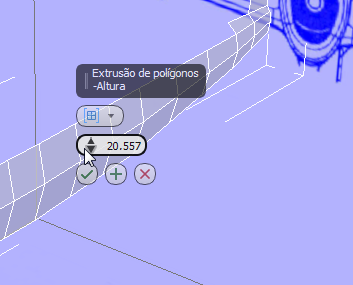 (Extrusão). Utilize o controle de Altura da caixa de ferramentas para efetuar a extrusão das faces em um valor em torno de 20,0. Veja seu trabalho nos viewports Perspectiva e Superior.
