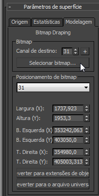 A guia Modelagem tem controles para aplicar um bitmap a uma superfície.
