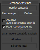 De acordo com o estado do container herdado, se ele está aberto ou fechado, o painel Modificar mostra uma das duas caixas de expansão, Conteúdo local ou Conteúdo herdado, mas nunca ambas.