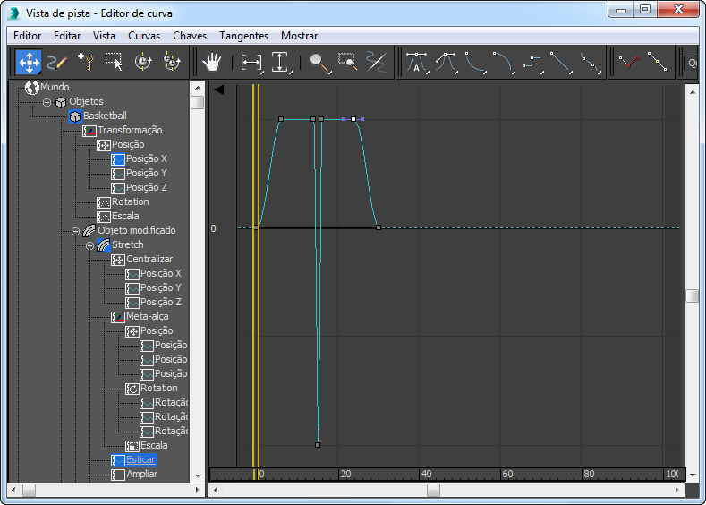, localize a faixa do parâmetro Esticar. A hierarquia aparece como Bola de basquete