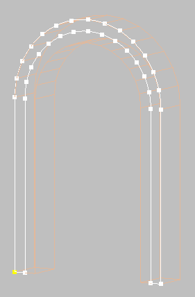 Nesta lição, você escolhe o material de tijolo a ser mapeado para o arco do edifício e especifica o modificador Unwrap UVW como o método de mapeamento. Em seguida, você cria um objeto de spline e usa-o como um guia para o processo de mapeamento.