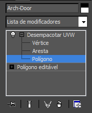 - Na pilha de modificadores, na hierarquia do modificador Unwrap UVW, clique em Polígono para ir para o nível do subobjeto Polígono.