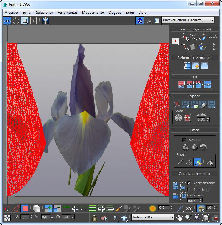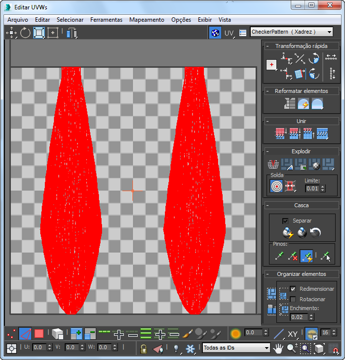 O padrão do mapa aparecerá na janela Editar UVWs.