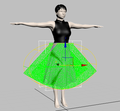 Os viewports do 3ds Max exibem a saia como as malhas planas criadas pelo Criador de vestuário.
